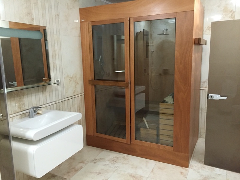The first floor: boiler room; three garages; fitness center with floor heating; a sauna and a lounge with floor heating; storeroom.