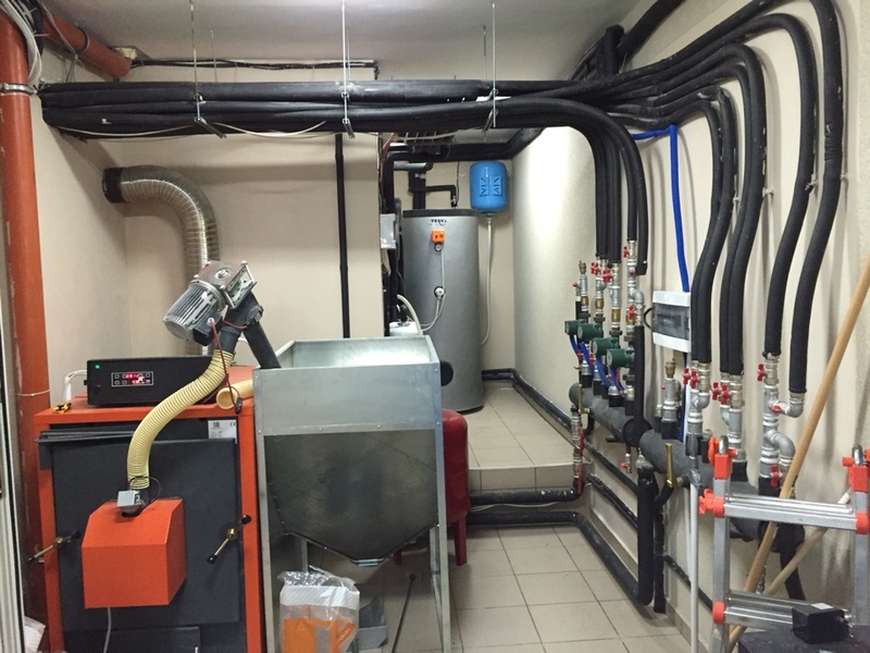 • Boiler that runs on pellets and ensures the work of the floor heating system in the house;