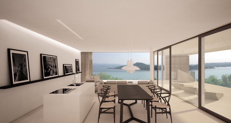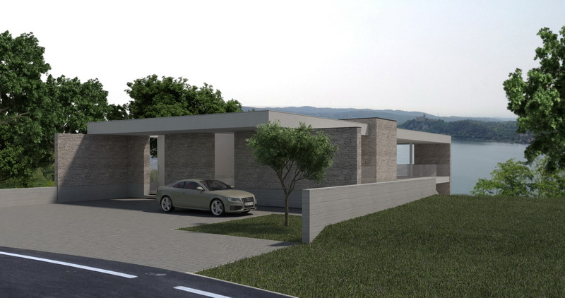 Brand new modern Villa with infinity edge pool, in a panoramic position of Arona, with a magnificent view on the Lake Maggiore and the Rocca Borromea. It is unrefined, with the possibility to choose the finishing and ask for the “turnkey” option. The project expects to build three floors: on the upper floor a living area with big open windows and covered terrace, kitchenette and half-bath. On the lower floor three bedrooms, two bathroom and covered terrace, and in the basement fitness area, hobbies room and equipment room. The property is sold with all the facilities, pool and internal stairs predisposition, letting the future owner to complete it with a personal taste.
