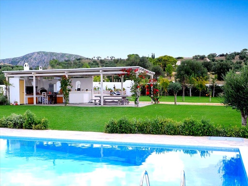 Выполненная в средиземноморском стиле вилла,уютно расположилась неподалеку от курортного городка Лутраки на берегу Коринфского залива.Курорт славится своими природными минеральными источниками,одним из самых больших казино в Европе,а помимо этого СПА-центром,множеством баров,ресторанов и таверн.Особенность этого региона в том,что здесь помимо кристально чистого Ионического моря,есть много сосновых рощ,придающих особый колорит местности.