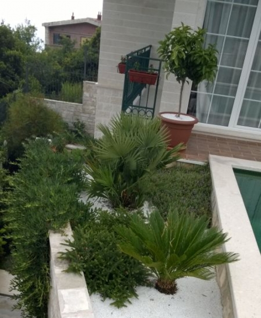 Просторный, комфортный, функциональный дом площадью 190 м2 построен в 2013 году на участке 400 м2. Изящный мраморный фасад белоснежного цвета позволяет дому идеально вписаться в окружающий ландшафт и соответствовать классической архитектуре Средиземноморья. Красивый ухоженный сад с зелеными насаждениями цитрусовых растений (грейпфрут, кумкват, гибридный лимон, апельсин, мандарин), пальмы, хвойные. На участке расположен бассейн с современной системой очистки без использования хлора.