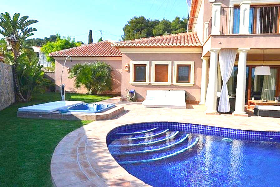 Reduced prices from € 1.900.000! Elegant villa in colonial style with panoramic sea views in Moraira (Costa Blanca).