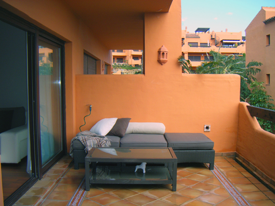 Beautiful apartment outside the center of Estepona in a closed complex with 4 pools and large gardens , The apartment consists of 2 bedrooms, 2 baths , living room, kitchen , laundry room , garage with storage room .