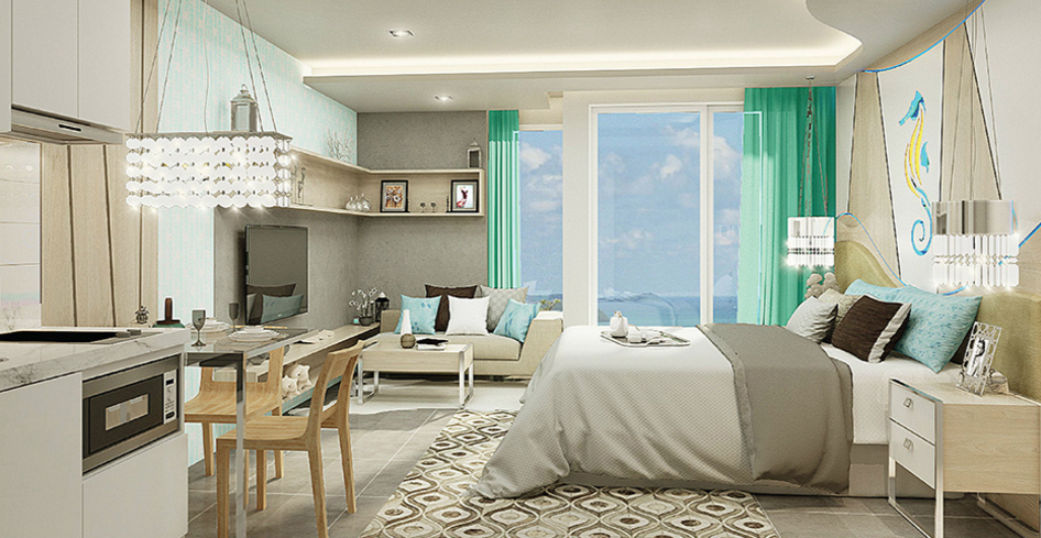 Apartments for sale in the resort of Phuket, one of Thailand's southern provinces. Located in the heart of Phuket, the complex is surrounded by a stunning natural landscape, and from here you can easily get to the key sites of the island. The unique natural beauty of the different islands of the world inspired by the landscape designers divide the huge - an area 12 of the heavens - the territory of the complex on the seven thematic areas, registration of which is reminiscent of the famous seven islands. Four of these zones, which are located on the territory of the pools with a total area of 7,000 m2 - is Jeju, Capri, Koh Tao and Naxos. Between thematic areas you will find caves, waterfalls, lakes, water chutes, spa pools, Jacuzzi and more. The complex also has a business center, fully equipped gym, a games room, as well as separate male and female saunas. Despite the fact that the resort Seven Seas Condo is characterized by high quality and variety of infrastructure components, apartments here - one of the most accessible of the proposed Phuket. Prices for studio apartments, which area is either 23.5 or 26.5 m2, start with the least amount of 1.7 million Baht (44 270.6719 euros), which includes full furnishings and household appliances. Other ways of planning - this one bedroom apartment area of 36.5 or 37 m2 apartment with two bedrooms / two bathrooms, an area of 54.5 or 55 m2. Apartments on the first floor overlooking the pool have direct access to the pool, so you can dive into it right from your private terrace.