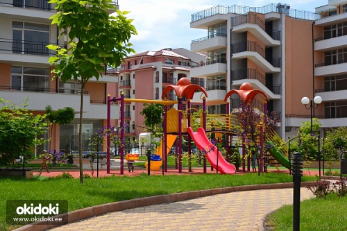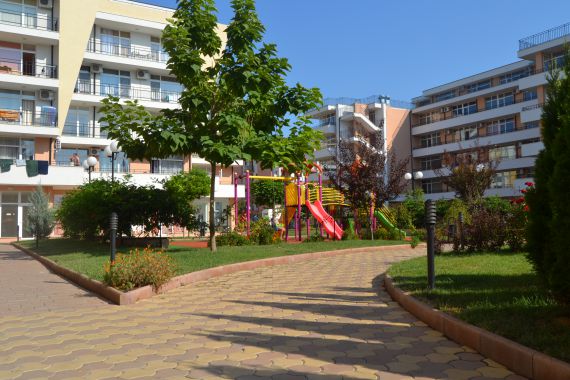 Апартаменты находятся на первом этаже со стороны детского бассейна и детской площадки.