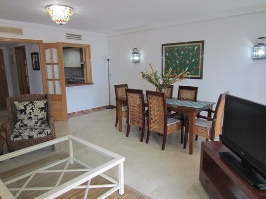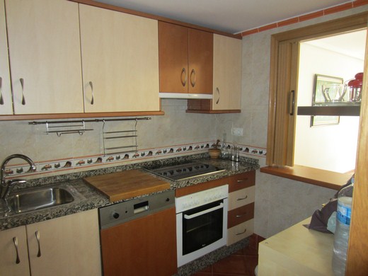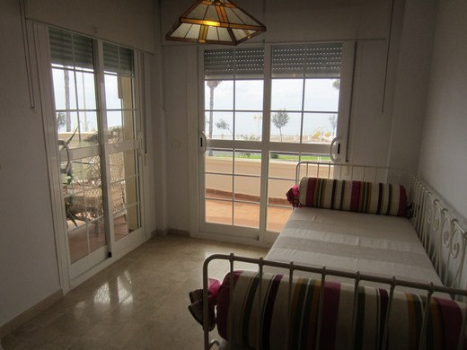 BEACH FRONT with sea views! First floor apartment, 3 beds./2 bathrooms (one en-suite) 100m2 + 3 terraces of 50m2 and down to a private garden of 90m2 (in usofructo). Excellent condition and professionally decorated with quality furniture, sea views from living room and all bedrooms. French windows, very bright, modern rustic style. double glazed white, beige marble floor, 4 wardrobes, lounge 35m2, kitchen with ceramic hob. Air condition in all the house. Instal. piped music. Fitted-in lights in hall, kitchen and bathroom, satellite TV, video intercom. very large garage (for 2 cars) and attached storage of 20m2
