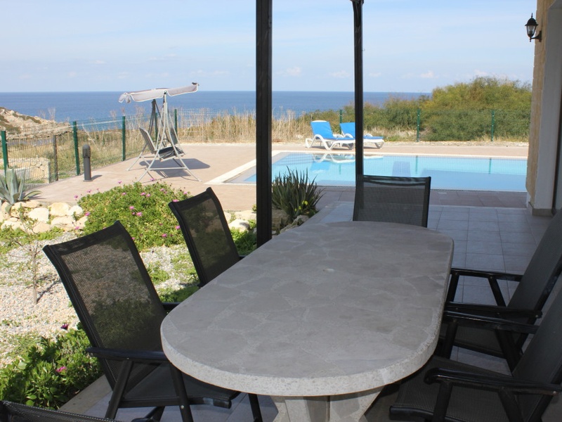 Это современная 3-х спальная вилла с видом на море и частным бассейном. Имеет 6 спальных мест.  Расположена в тихом месте с панорамным видом на море, в нескольких минутах ходьбы от пляжей и местных достопримечательностей. Есть две спальни с двуспальными кроватями (одна с собственной душевой комнатой) и одна спальня с двумя односпальными кроватями. Есть отдельная семейная ванная комната. Во всех комнатах имеются кондиционеры. Терраса у бассейна т оснащена встроенным бакбекю, вторая  терраса находится на крыш. Недавно установлен большой плазменный телевизор со спутниковыми каналами и WiFi.