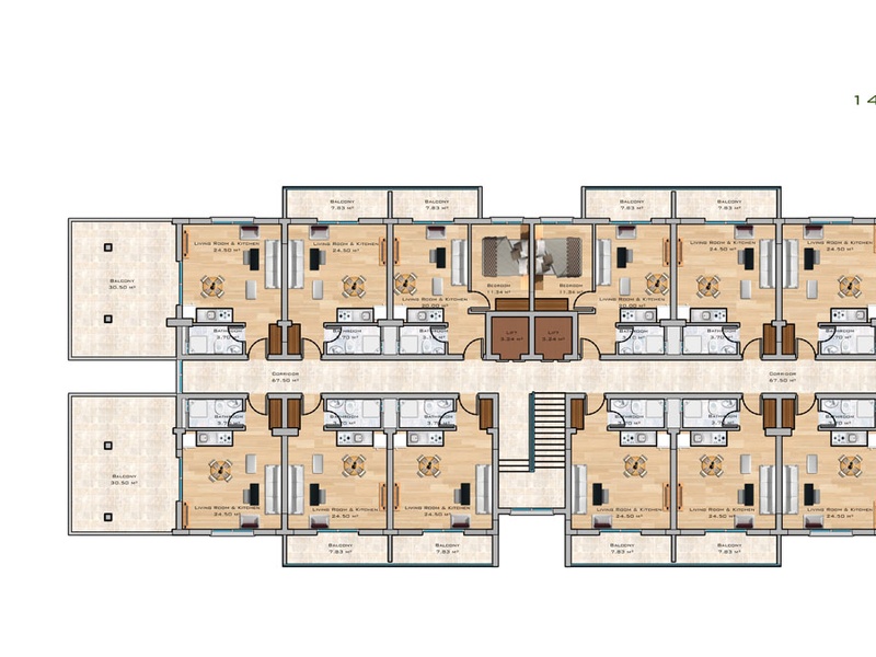 Проект состоит из 500 комфортабельных квартир-студио и квартир с одной спальней с видом на море, с балконов которых Вы будете встречать рассветы и провожать закаты.