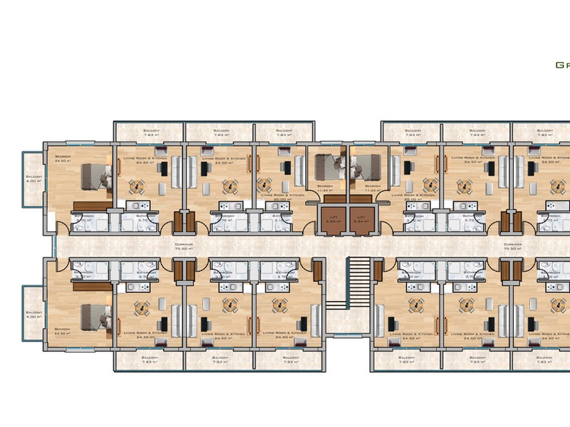 Проект состоит из 500 комфортабельных квартир-студио и квартир с одной спальней с видом на море, с балконов которых Вы будете встречать рассветы и провожать закаты.