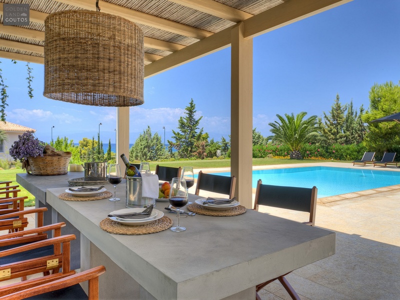The villa of the description stands out for its beauty and is built in Ververonda, the most up-and-coming residential area of Porto Heli and close to the Amanzoe resort. It is located in a small settlement with luxurious residences, only 60m away from the “Kyparissia” beach and 2km away from the harbor of Porto Heli. Among the advantages of this villa is the privacy together with the safety, since the neighborhood is inhabited by many noble families.