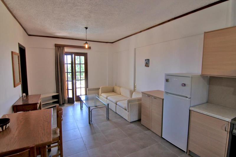 Квартира площадью 30 м2 расположена на третьем этаже и состоит из гостиной с кухней, душевой комнаты и террасы. С террасы открывается замечательный вид на море и горы. В квартире камин, мебель, кондиционер.