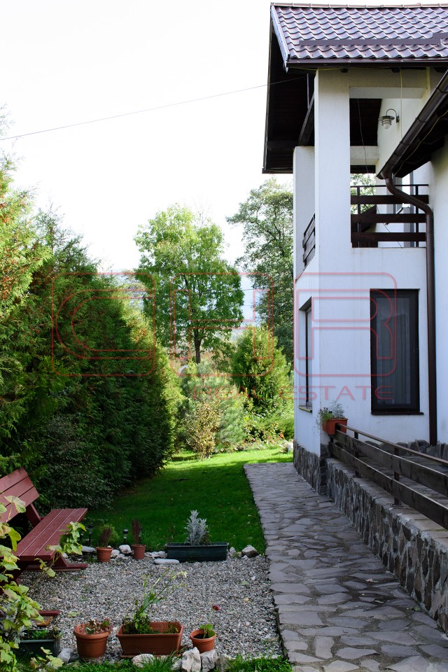 Luxury villa situated in Predelut, near Bran Castle, Brasov County. Very well devided, the villa is situated in a peacefull area in perfect harmony whit the surrounding nature. The estate is build in 2010 and is composed of ground floor, 1st floor and attic. It has a land area of 1584 sqm and a villa structure construction of 245 sqm ground print and 340 sqm usable area that includes 4 bedrooms, 3 large dressings, 5 bathrooms, spacious living and dinning area, kitchen, kitchenette ,4 teraces and a 2 car garage.