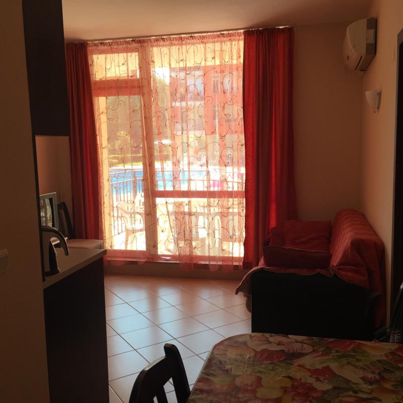 Продается двухкомнатная квартира на Солнечном берегу в 450 м от пляжа, идеально подходящая для круглогодичного проживания, так как комплекс находится всего в 20 м от большого круглогодичного супермаркета и в районе, где проживает основная часть местного населения курорта. В квартире есть вся необходимая мебель и техника, все в идеальном состоянии. Площадь - 60 кв. м, этаж - 1. В комплексе есть кафе и круглый год работающая ресепшн, парковка.