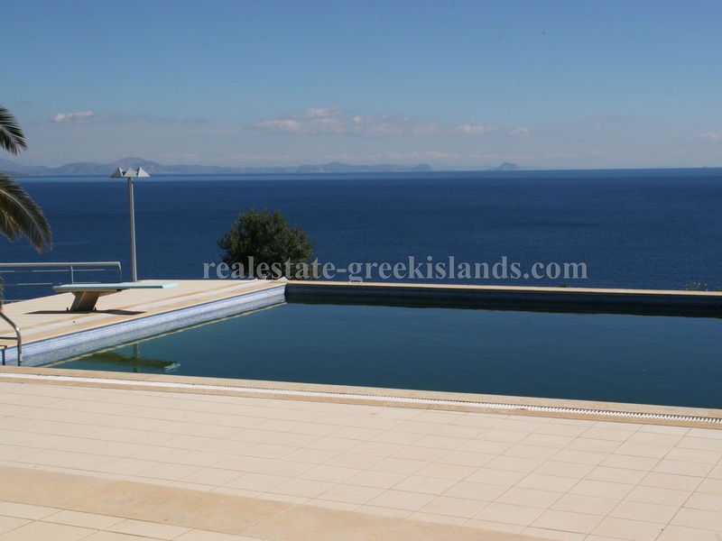 Villa by the sea in Agia Marina, close to the best beach on Aegina with unique view of Glyfada, Varkiza, Aegean Sea. It has 3 levels, 320sq. m. on a 11 acres plot with 2 pools 50 sq. m. and 80 sq.m. It has 6 bedrooms, 2 living rooms, 2 kitchens, 5 bathrooms and a fireplace. High quality construction with autonomous heating system, aluminum frames, A/C, BBQ, outdoor parking space, storages, alarm system. At the outdoor space there is a really beautiful little church. There is also a guest house (3 levels), 210 sq.m. with 5 bedrooms, 3 bathrooms and a storage. On sale for 2 800 000€