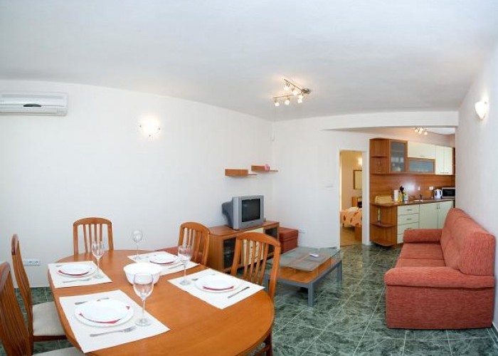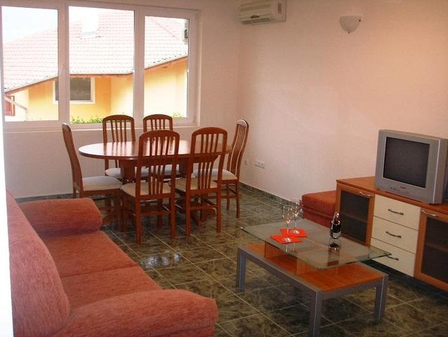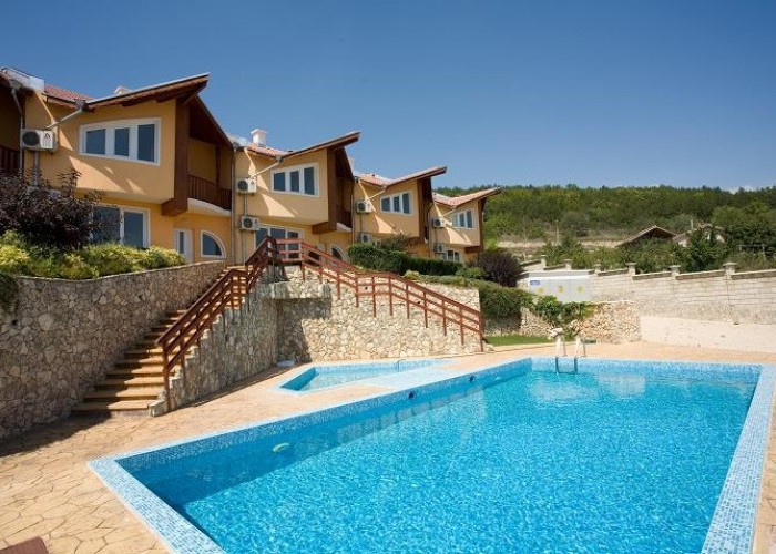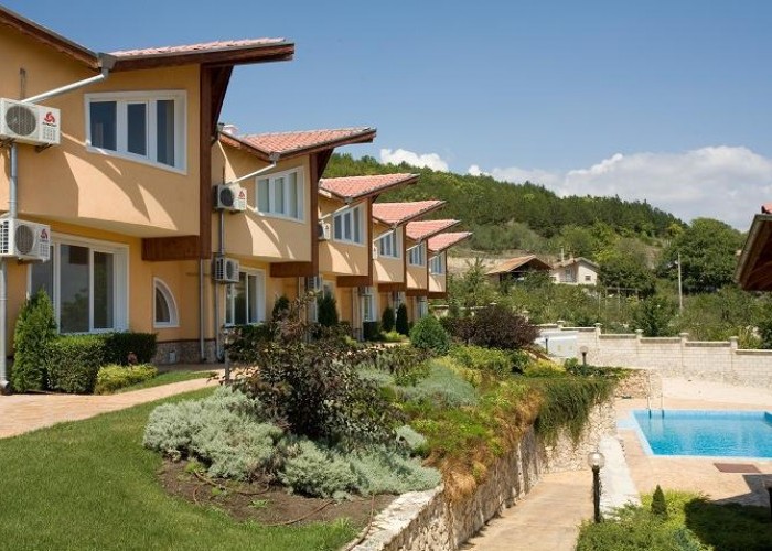 On the first floor of the town house there are an entrance hall, a dining room, a living room with kitchen in an open space, a bedroom, a bathroom with a shower. On the second floor there are two bedrooms, a bathroom and a spacious balcony. Each room has air conditioning installed. Pool view from all rooms. Townhouse is offered for sale fully furnished.
