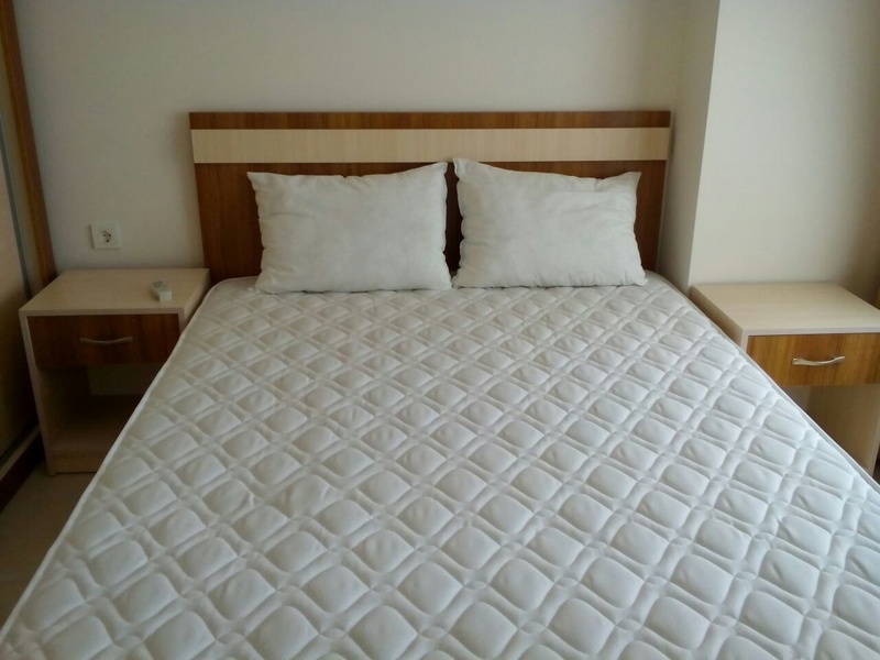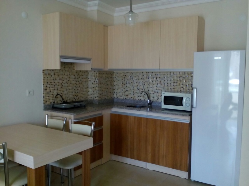 Турция - Продается недорогая двухкомнатная квартира в Махмутларе в 200 метрах от пляжа Квартира на пятом этаже, с южной стороны, полностью меблирована, с бытовой техникой и кондиционерами, площадью 63 м2, с одной спальной и ванной комнатами, гостиной с кухонной зоной, балконом. На территории комплекса, состоящего из двух блоков, есть бассейн, беседка, ухоженная территория. Цена: 42500 евро