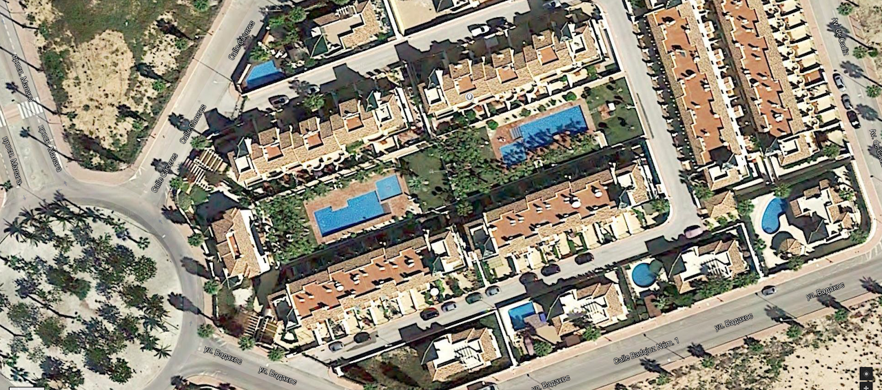 Солнечный таунхаус в закрытом жилом комплексе с двумя бассейнами и зеленой зоной для отдыха жильцов. Раположен в резиденции Manuela в Ciudad Quesada. Rojales.