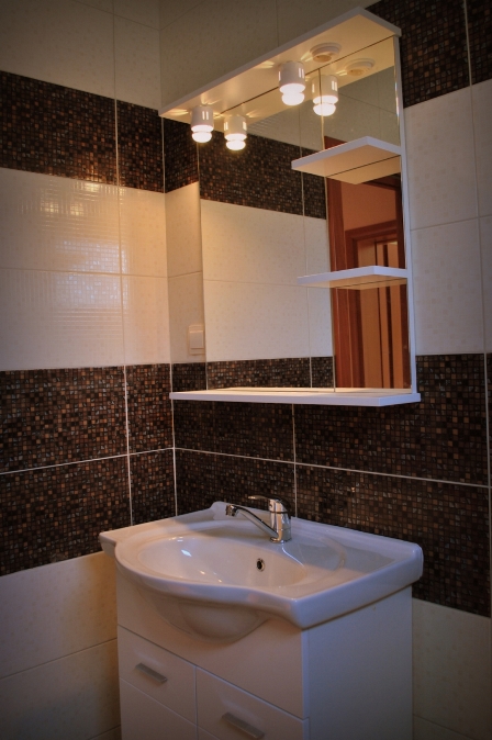 Все апартаменты имеют площадь 50 м2, состоят из гостиной с кухней, спальни и просторного балкона с видом на море и поселок. Апартаменты уже частично меблированы, оснащены удобной кухней, современной душевой кабиной, сантехникой, кондиционерами, на окнах установлены жалюзи. Въезжай и живи! Возле дома оборудована парковка.