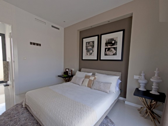 For sale luxurious villa overlooking the Costa Blanca (south), a strip of the Mediterranean coast of Spain, Alicante province, autonomous community of Valencia. Zone of tourism and recreation. The villa was built in 2015, it has 4 rooms, 3 bedrooms, 3 bathrooms. The living area of the villa is 145 square meters, the total area of 151 square meters, 410 square meters of land, parking. The villa has a terrace, air conditioning, swimming pool, cellar, garden, balcony, lake view, sea view. This is one of the most spectacular villas located in Doña Pepa. This beautiful villa was designed and built with love, with private basseyom.