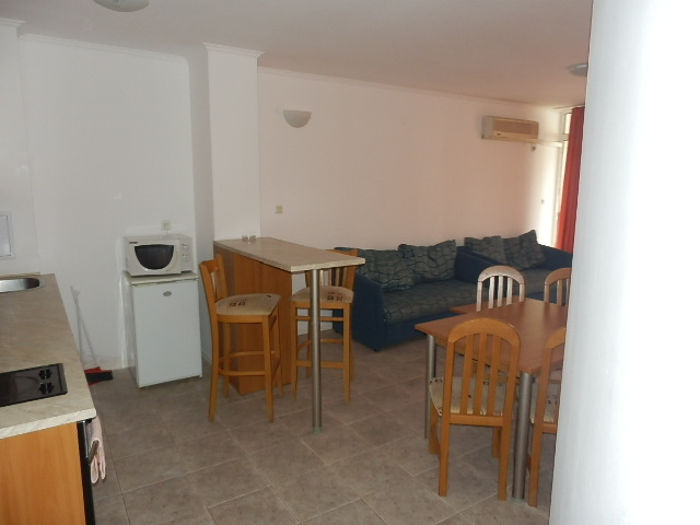 The apartment is located on the first floor in a gated complex and consists of a corridor, living room with kitchenette, two bedrooms, two bathrooms, a balcony overlooking the pool. The area of the apartment is 92 sq.m. The complex is splendidly located at 100 m. from the beach. In the complex there are: • Reception desk; • Swimming pools for adults and children; • Restaurants; • Grocery stores; • Beauty saloon; • Landscape design; • Parking; • Round the clock security. Price: 39900 Euro