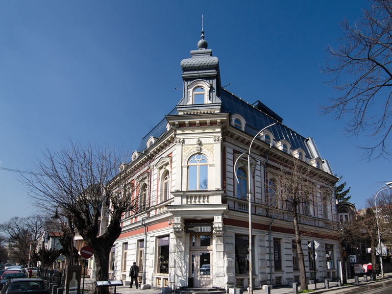 Фасад: новые каменные орнаменты фасада (фронтоны, пилястры, консоли, главные карнизы, междуэтажные карнизы, подоконные карнизы, облицовка) сооружены из врачанского камня. Все орнаменты прикреплены бетоном к старой кирпичной кладке и использованы фусы из нержавейки и SIKA AnchorFix клей. Старые каменные орнаменты фасада (фронтоны, пилястры, консоли, главные карнизы, междуэтажные карнизы, подоконные карнизы, облицовка) отреставрированы ALBARIA INTONACO и ALBARIA INIEZIONE 100, раствор, наподобие старого римского цемента. По этой же технологии отреставрированы фракийские гробницы в селе Крын.