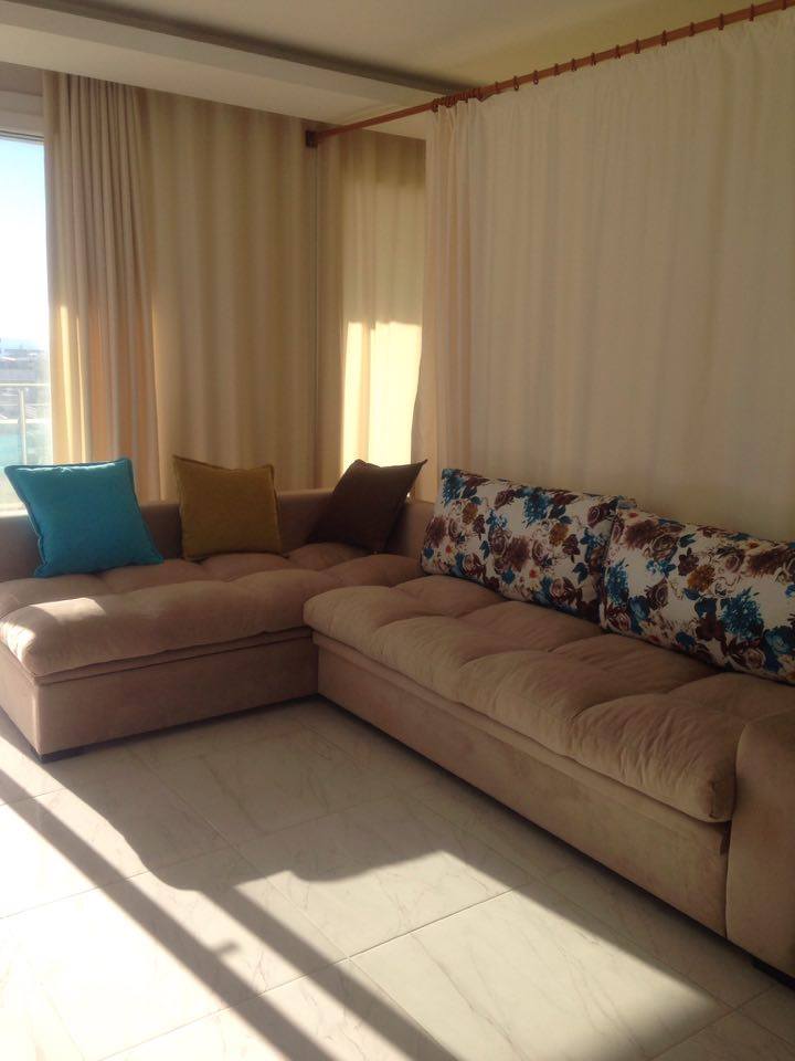 Квартира на 8 этаже, с мебелью и бытовой техникой, все чистое так как в квартире не живут, это студия 55 кв метров, но там 2 огромных окна из каждого выход на балкон, как 1+1 квартира, юг, вид на море.