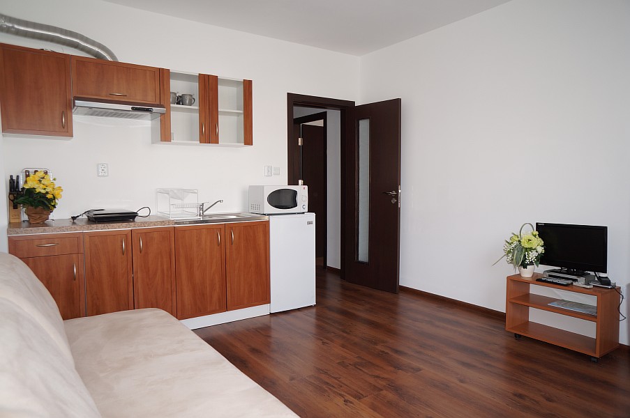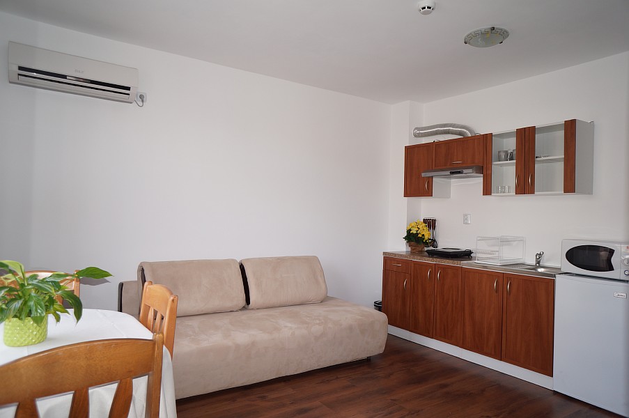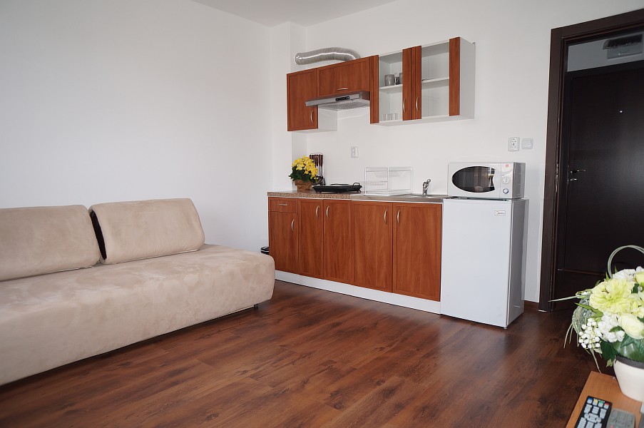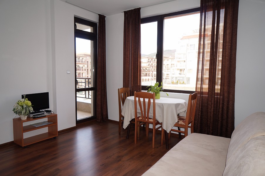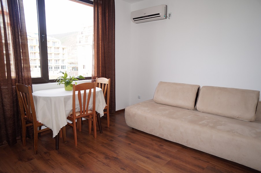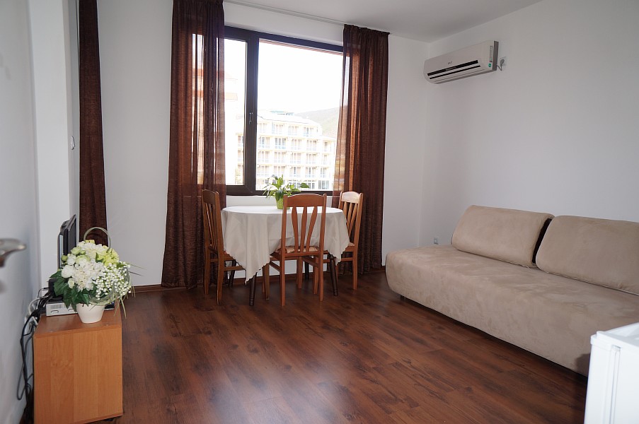 Zu verkaufen ist eine gemütliche 2-Zimmer-Wohnung im 3. Wohnstock im Komplex Raduga in  Sveti Vlas. Sie besteht aus Wohnzimmer mit kleiner Küche, Schlafzimmer, Badezimmer plus Toilette und Terrasse. Die Wohnung ist voll möbliert und mit Haushaltsgeräten, Klimaanlage, Geschirr und Besteck ausgestattet. Sie ist sowohl für den Urlaub als auch für ganzjährige Bewohnung passend. Sie ist auch eine ausgezeichnete Geldanlagemöglichkeit!