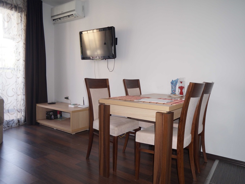 Die Wohnung besteht aus: Flur, Wohnzimmer mit kleiner Küche, 2 Schlafzimmer, Badezimmer mit Toilette, 2 Balkons. Die Wohnung ist voll möbliert und mit Haushaltsgeräten, Klimaanlagen, Geschirr und Besteck ausgestattet. Sie ist sowohl für den Urlaub als auch für ganzjährige Bewohnung passend. Sie ist auch eine ausgezeichnete Geldanlagemöglichkeit! Sie ist auch für Vermietung während der Sommermonate passend.