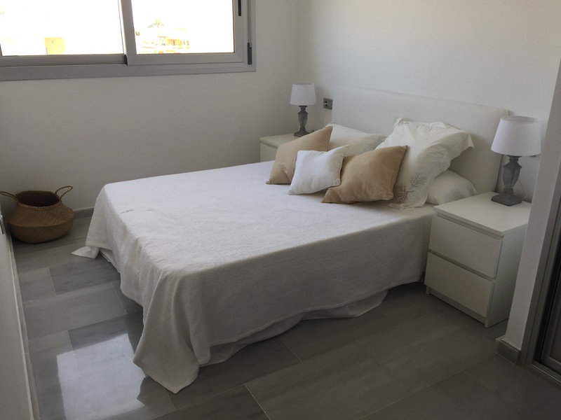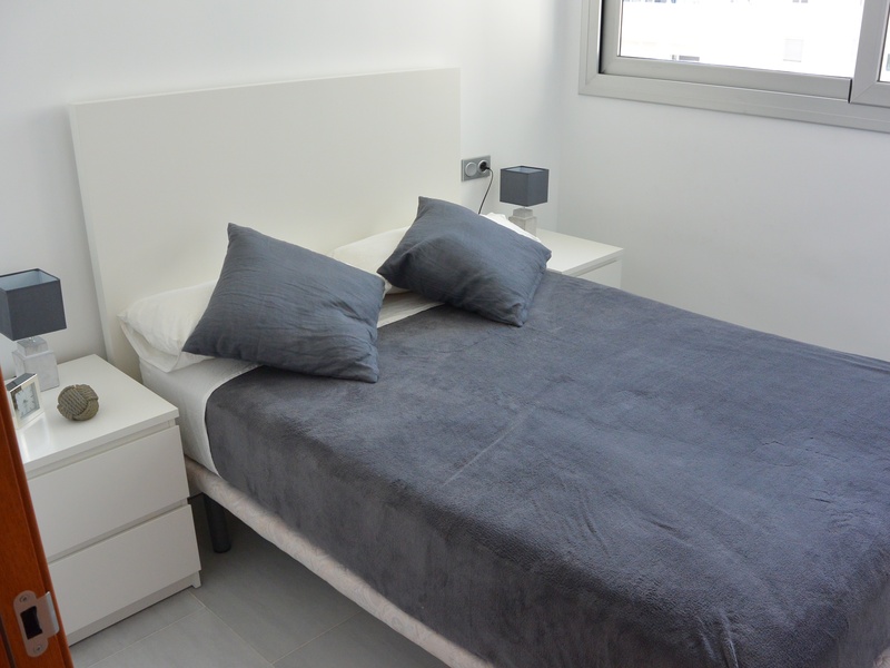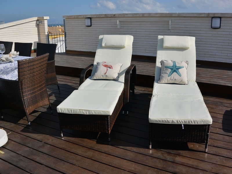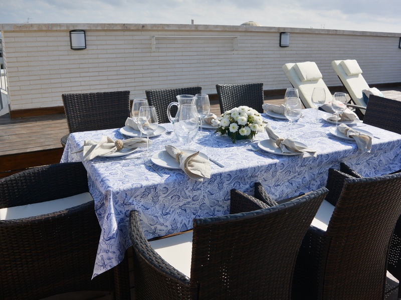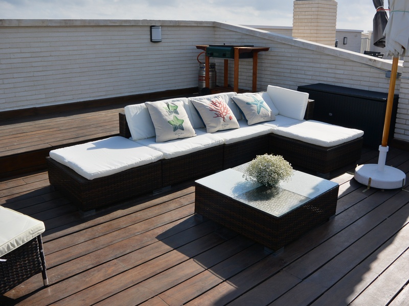 The flat is 135m2 (1453.13ft2) distributed in 3 spacious double bedrooms each one with its fitted wardrobes, one of the bedrooms is a Suite (with its own bathroom), 2 bathrooms (one with bathtub and bidet), big kitchen, living-dining room, entrance hall with two fitted wardrobes, a 12m2 (129.167ft2) terrace with a access staircase to a 60m2 (645.835ft2) big terrace of exclusive use, also furnished, with parasols, barbeque and shower. Very bright house with high ceiling and oriented North (12m2 terrace, one double bedroom and the Suite), South (kitchen, one double bedroom and entrance hall) and West (living-dining room). It includes a garage space and store room in the basement accessible with the same elevator.