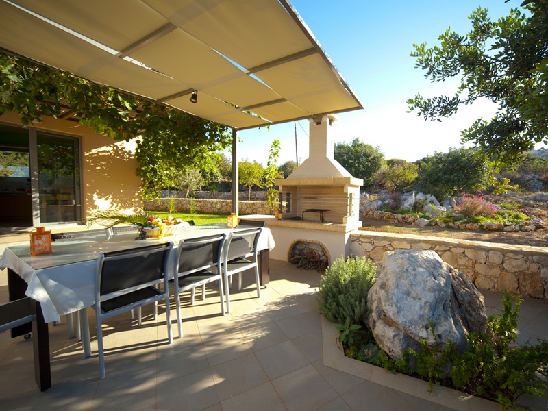 Дом находится на участке площадью 4077 м2, территория виллы благоустроена и тщательно ухожена, дорожки выложены натуральным камнем, сад засажен фруктовыми и декоративными деревьями. Вилла располагает парковочными местами, плавательным бассейном и зоной отдыха с барбекю. С террас открывается великолепный вид на море и окрестности.