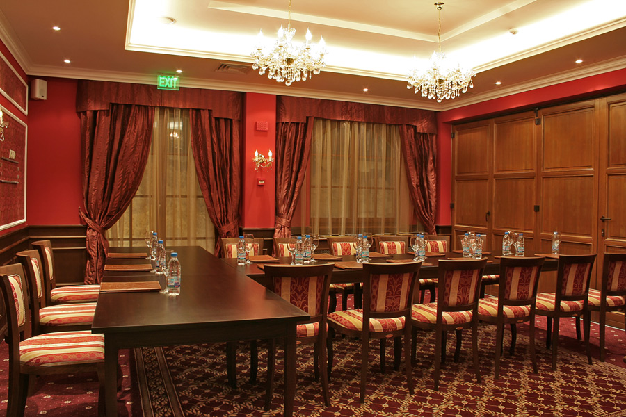 There are also two multi-functional conference rooms, each with 40 seats. They are separated by a soundproof wall and can be transformed into a common room for 80 persons (100 square meter) for events with a large number people. They have different colors and can be used for various functional purposes from business meetings to cocktail parties, and can be extended to the main restaurant Danube. In addition to the lates technology equpement the halls are provided with all office appliances needed (photocopiers, printers etc.) including system for simultaneous translation.