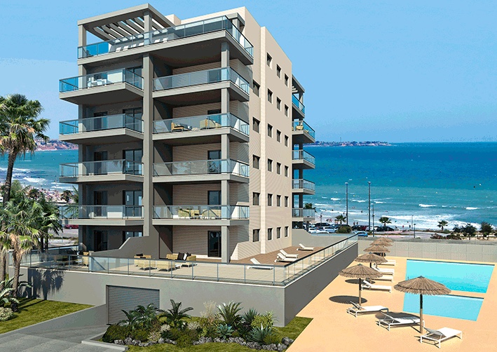 New Residence composed of a modern building with first quality materials, first line to the sea, with extensive garden areas, nocturnal ambient lighting, children's playground, underground parking and community pool for adults and children. The apartments consists of 3 bedrooms and 2 bathrooms. Designed with an exquisite taste. Very comfortable for living. All the apartments have large terraces, where you can enjoy the stunning sea views.