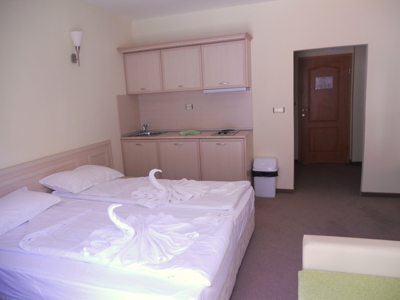 Студия с мебелью и техникой  в  гостиничном комплексе, находящемся только в 200 метрах от пляжной полосы самого известного болгарского курорта – Солнечный берег. Покупка апартаментов в этом комплексе является прекрасной возможностью для  хорошей и долгосрочной инвестиции. Жилье состоит из зала с кухонной части, сан.узла, прихожей и балкона. С видом на бассейн. Находится на первом этаже. Площадь составляет – 40.15 кв.м.
