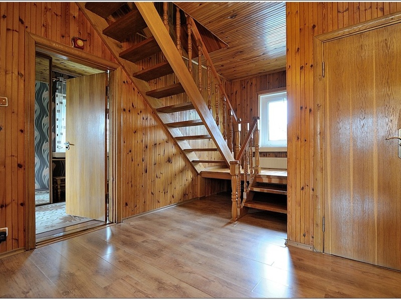 – Стены – покрашены, в коридоре – деревянные доски, на втором этаже – обои;