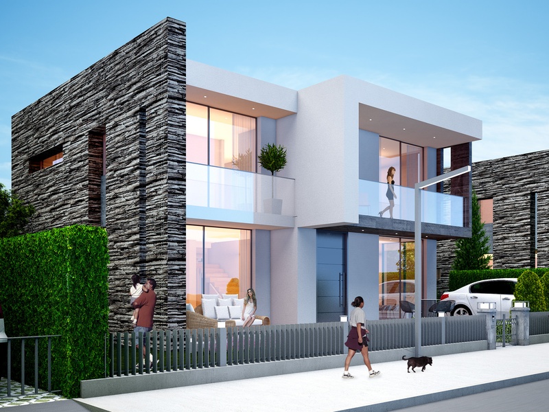 Villa Specifications: - Entrance Hall - Living room - Open Plan Kitchen - Dining room - Stair cases - Enormous number of Options at Ceramic Tiles at the Bathroom and wc - Enormous number of Options at Ceramic Tiles and laminate parket at the floors - 3Bedrooms - Balcony in all bedrooms - Fitted wardrobes at bedrooms - Bathroom, wc and wardrop room in master bedroom - PVC Windows - The facade with stone walls - Terraces - Parking Space - Solar Water Heating System - Hydrophore system - 3 Tones water tank - Common Swimming pool (Children,adults) - Outdoor Play ground