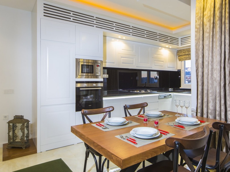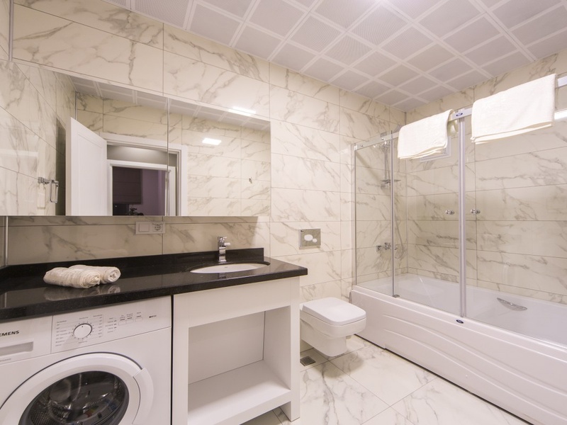 В продаже апартаменты со стальной входной дверью, двойными стеклопакетами на окнах, встроенным гардеробом в прихожей, встроенным кухонным гарнитуром с рабочей поверхностью из натурального камня, оборудованными ванными комнатами (душевая кабина, вся сантехника, встроенные шкафы), подвесными потолками со встроенной подсветкой, счетчиками, телефоном, интернетом, видеодомофоном, проводкой под установку кондиционеров