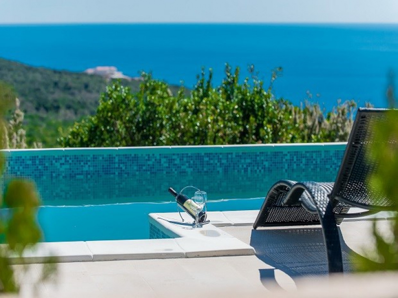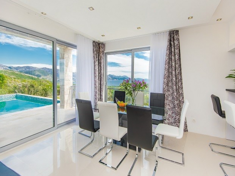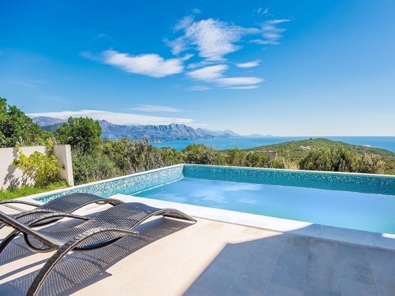 Новая вилла построена на зеленом склоне Будванской Ривьеры, в поселке Кримовица, всего в 7 км от Будвы. До ближайшего пляжа в Трстено – 900 метров.