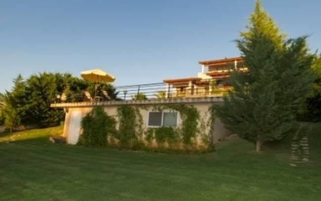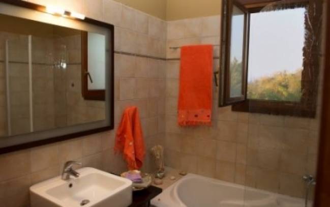 Villa for sale in the eastern part of Corfu (Gastouri Area) Greek island, the northernmost and second largest (593 sq km), among the Ionian Islands. The villa has 345 square meters, was built in 2008, on a fenced plot of 2100 square meters, about 5 km from the international airport and the island's capital. Built among olive trees Venetian era, on 2 floors with panoramic views of the turquoise waters of the Ionian Sea and the lush countryside of Corfu, and also includes a detached guest house of 50 square meters, large garden with fruit trees and a spectacular swimming pool. On the ground floor there is a living room with fireplace, dining room and functional open plan fully fitted kitchen. At this level there are two bedrooms, dressing room and bathroom, while upstairs there are 2 large bedrooms, a bathroom with a large bath and a cozy lounge. All rooms have large balconies and beautiful floors. There is a separate entrance to the pool and a garage that communicates through a door on the first floor of the house. In addition, there is a large area for storage of huge ancillary facilities. The villa is located 3 km from the picturesque island of Mouse and sold with luxury furniture or not.