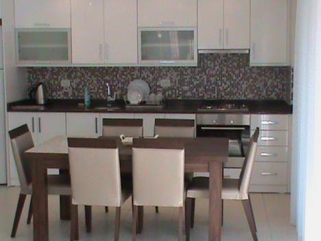 Квартира состоит из просторной гостиной "американского" типа, совмещена с кухней, двух спален (в одной двуспальная кровать, во второй одно- и двуспальные раскладывающиеся кресла-кровати) и двух ванных комнат.