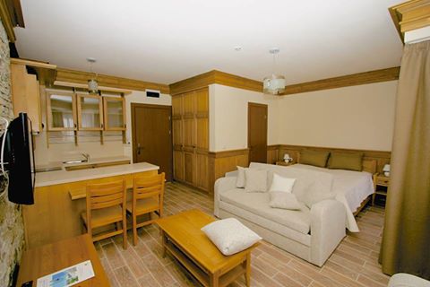 Здание построено с переходом в 5ти звездную гостиницу Pirin Golf Hotel и к СПА центру. Оно построено как комплекс из четырех соединенных между собой зданий, которые включают 5ти звездную гостиницу Pirin Golf Hotel , Спа Центр и 3 жилищных зданий апартхотела. Сам гостиничный комплекс иммет красиво озелененные площади, аллеи. Мебелировка в апартаментах тип – Студия в апарт-отеле аналогичны стандартной мебели в 5***** гостинице. Площадь апартаментов от 43 кв.м. до 270 кв. м., а стоимость от 43240,00 до 290000.00 Евро.