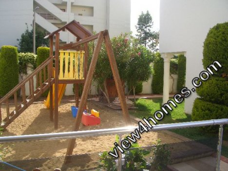 В квартире есть все необходимое для проживания. Укомплектована бытовой техникой. Расположена в благоустроенном комплексе с большим бассейном, на первом этаже. В большой спальне - двуспальная кровать. В детской - одна полутораспальная кровать. Есть беспроводной интернет, бесплатный для проживающих, бассейн и площадка с горкой и качелями для детей.