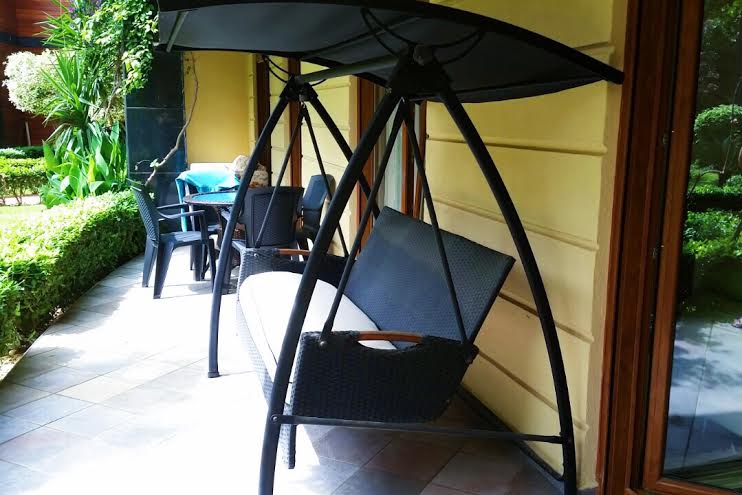 In the apartments there are two, equipped for recreation, terraces overlooking a beautiful garden, a fountain. On the terraces you can leave the living room and bedrooms.