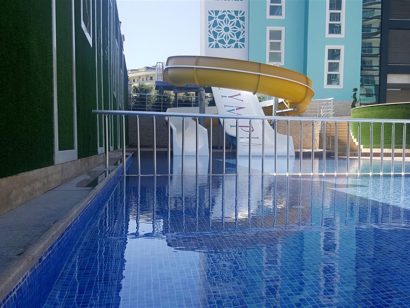 Residents will enjoy free access to the infrastructure of the complex, which includes a swimming pool with water slide, sun terrace with sun loungers and parasols, a poolside bar, barbecue area, playground, parking, Turkish bath / Hamam and more.