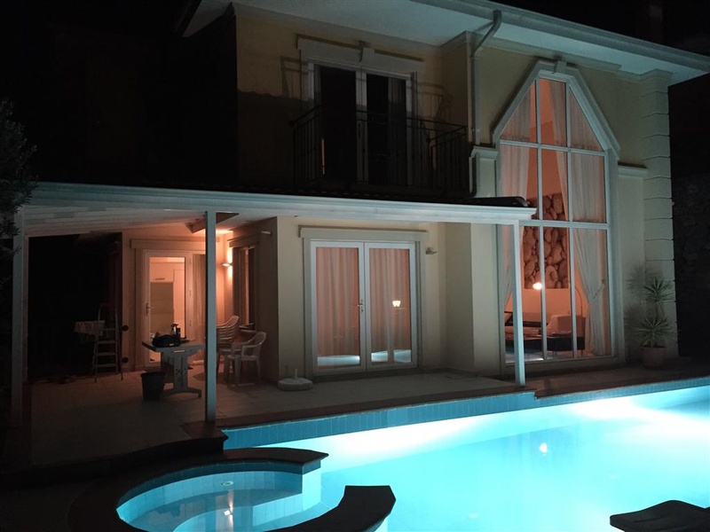 On the territory of the villa there is a private swimming pool with Jacuzzi, a garden with a territory of 450 square meters.