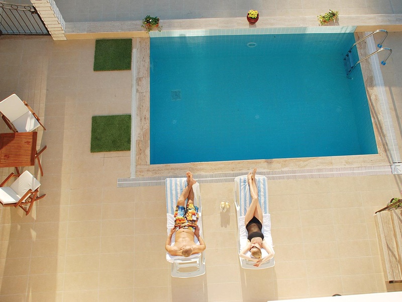 Lovely complex of 12 townhouses just in 1 km 300 m from the sea. Each house has its own private swimming pool (15 m2) and a terrace with sun loungers. The complex is located in the green area near Alanya - Kargicak.