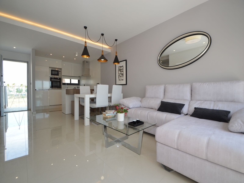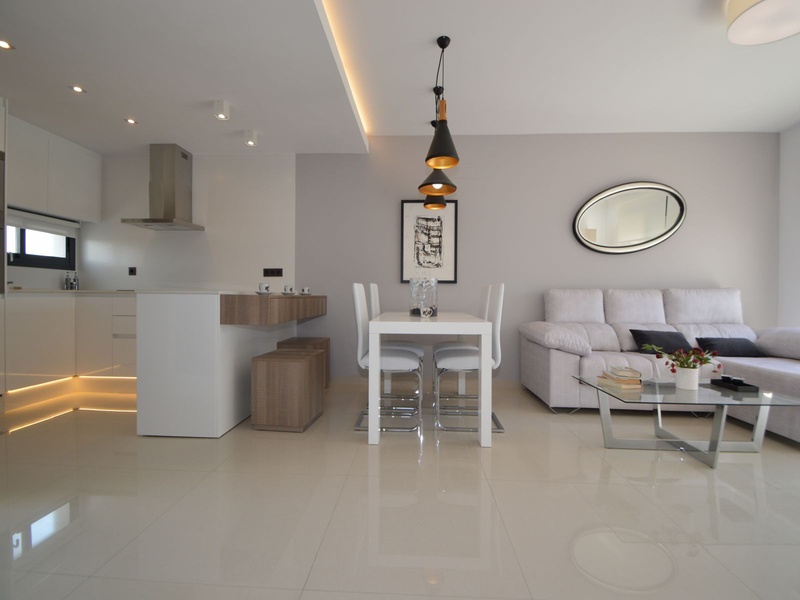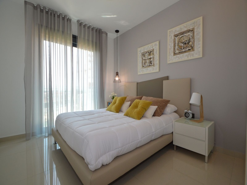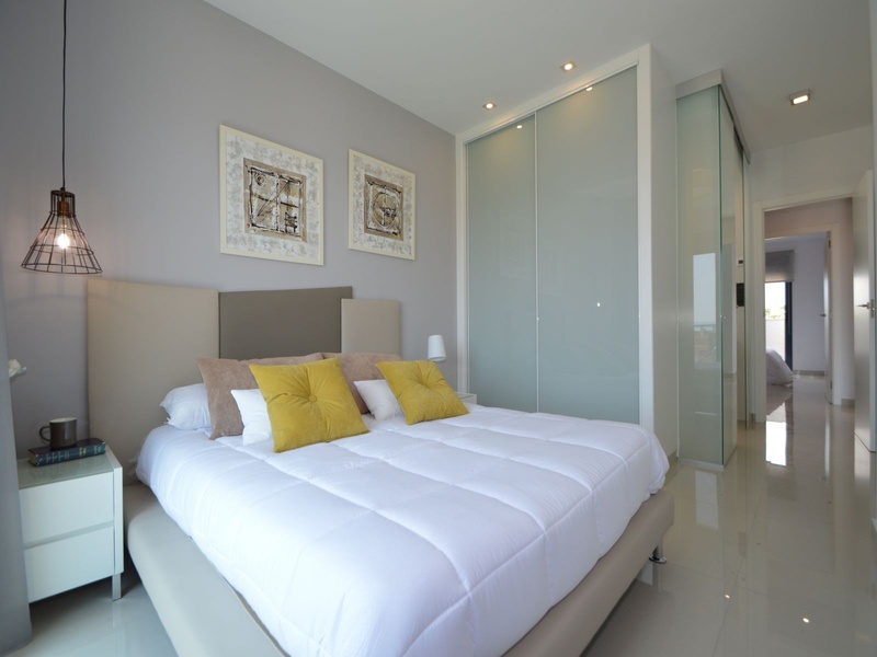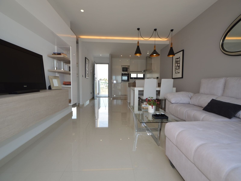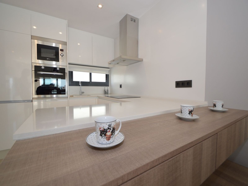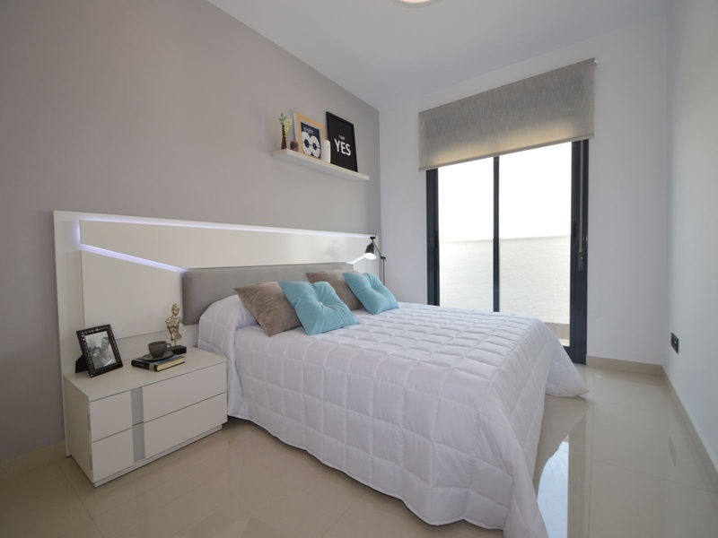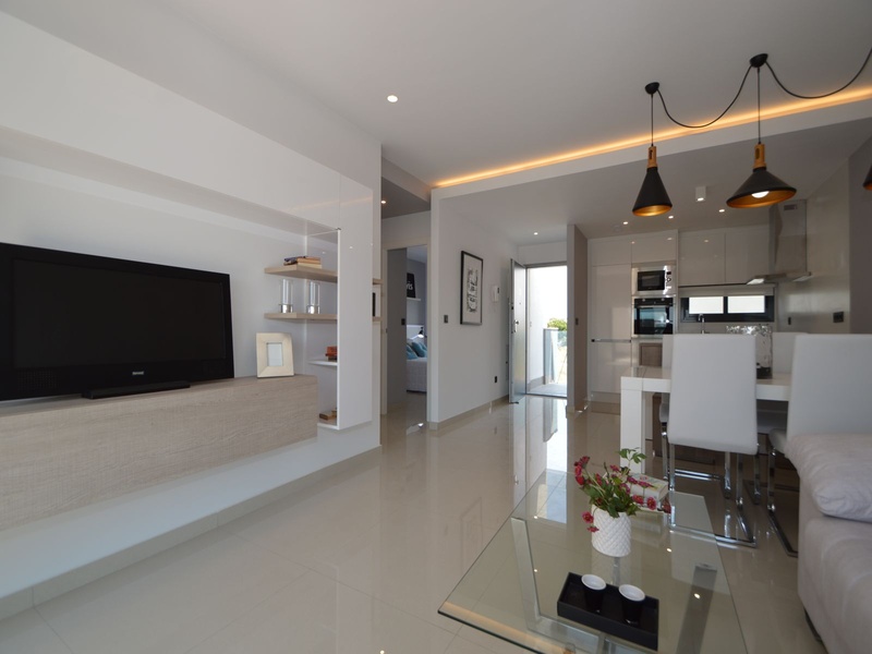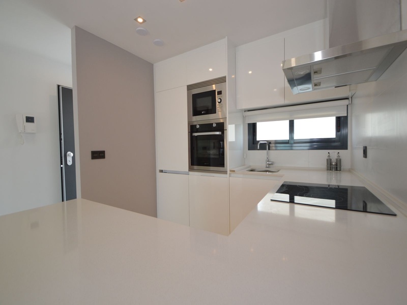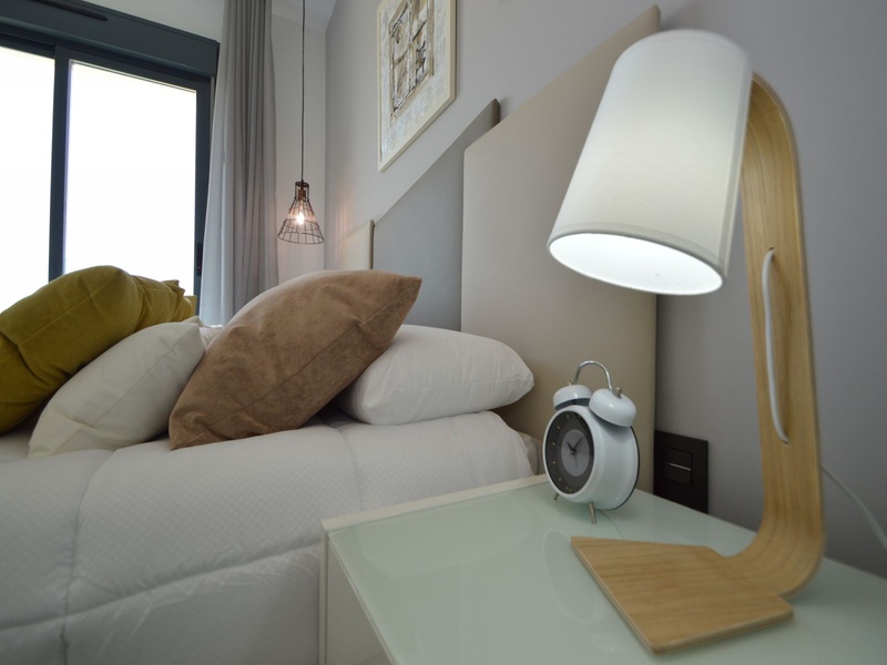Contemporary housing with a built surface area of 85,51 square meters, distributed between 2 bedrooms, 2 bathrooms, american kitchen, a living room, 1 storage room and a large terrace. It has a solarium of 64 square meters. Fully fitted kitchen and bathrooms, fitted wardrobes in both bedrooms, pre-installation of air conditioning and underground parking space - all included in the price. It is located on the top floor of a private 3 floors residential complex, which is a part of a gated community with large landscaped areas, swimming pools, spa and sports area. A very quiet area, but with all the amenities possible. Only 5 kilometers far from Guardamar del Segura with its white sandy beaches, and 10 kilometers far from Torrevieja. In close proximity to shopping centers, supermarkets, the market of Guardamar and several leisure areas for all tastes.