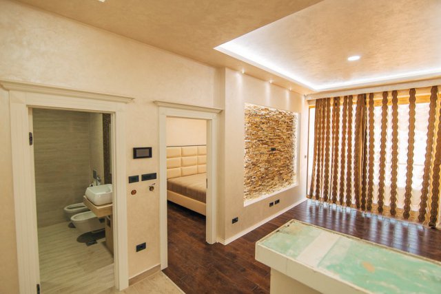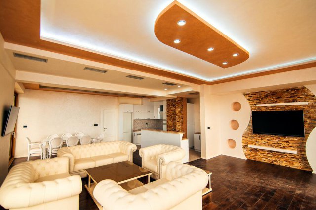 The first 2 floors of a shopping center with various retail outlets : grocery store (400m2), restaurant (155m2) with terrace 450m2, clothing store with a window overlooking the Mediterranean the street, a jewelry store (110m2) , plus 9 residential floors with 2-bedroom apartments, 44m2, 50m2 53m2, 60m2 ; 3-bedroom apartments of 85 m2 and 76m2 and luxury penthouses of 120m2. All commercial premises and the apartments are sold with interior decoration and renovation design at a client's request.