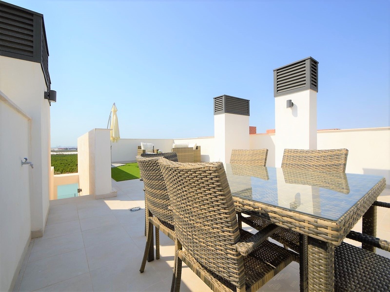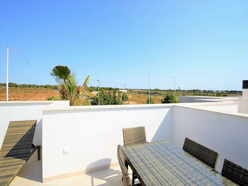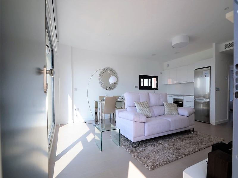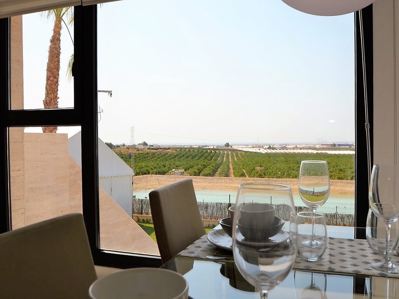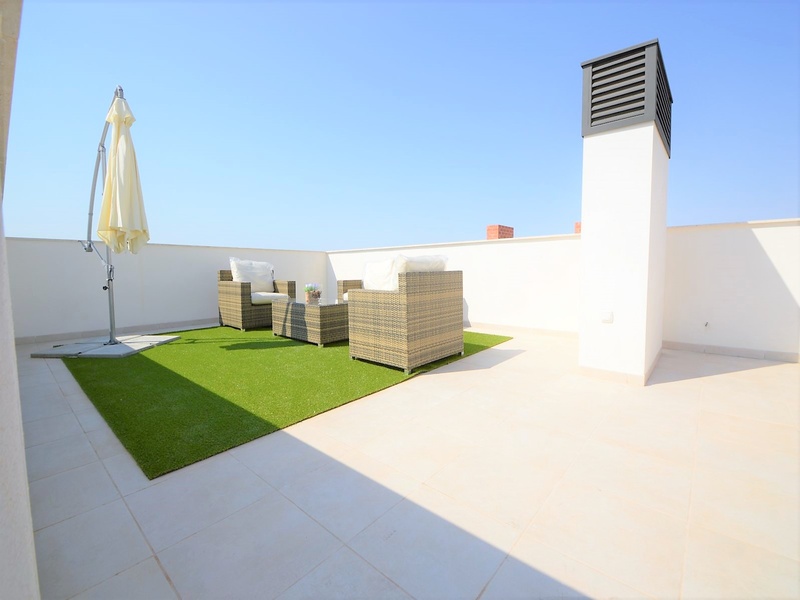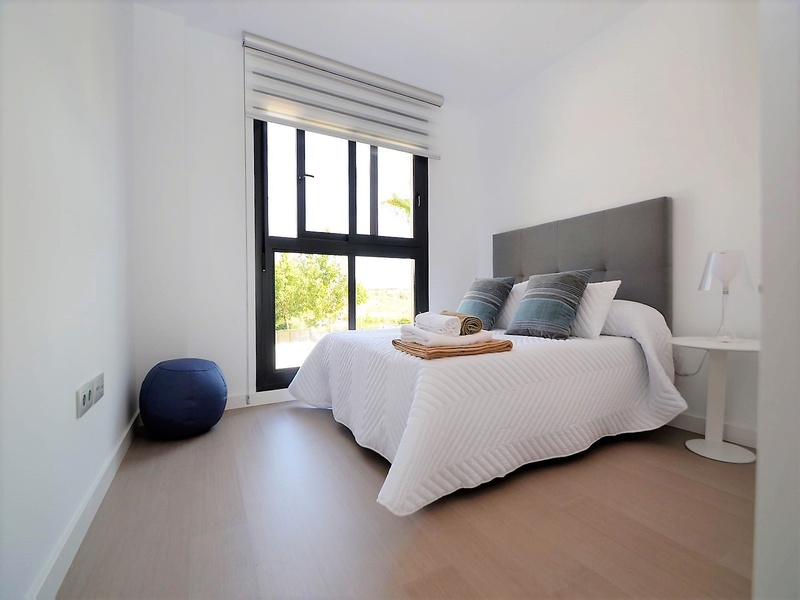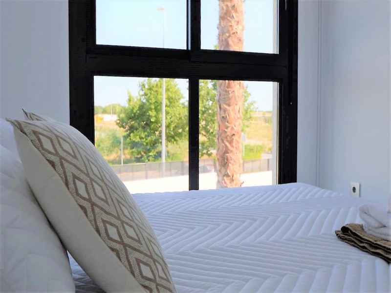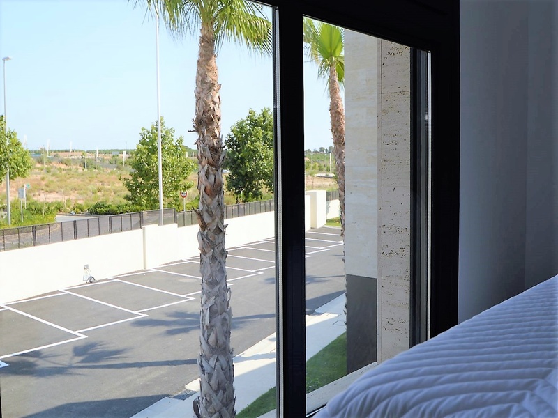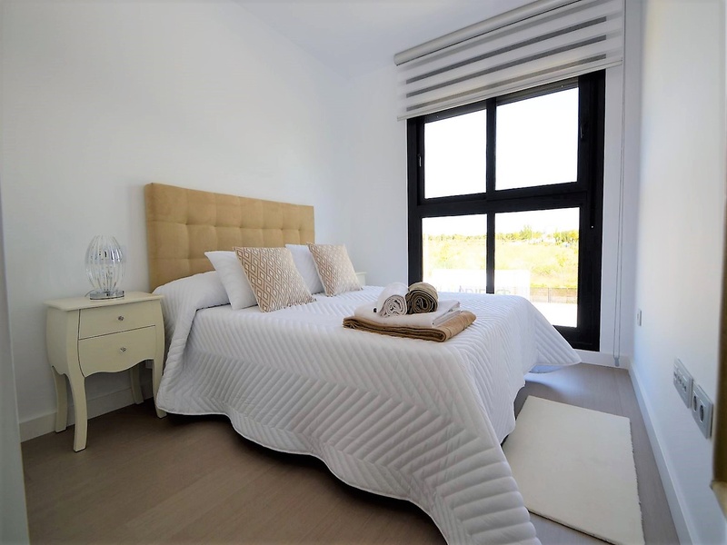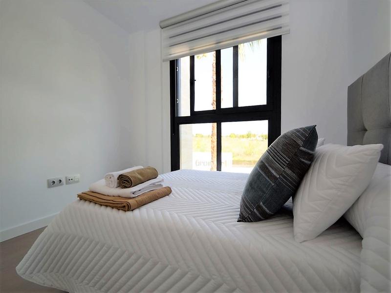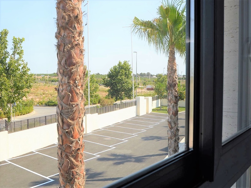 New build key ready 3 bedrooms apartment for sale. It is placed on the high floor of a two-levels building. A built surface area consist of 66,98 distributed between 2 bedrooms, 2 bathrooms, a living-dining room, an open kitchen and a storeroom. It also disposes of a wide solarium with sea views and a parking space at the common parking. Fully furnished and equipped with appliances kitchen, furnished and equipped bathrooms, pre-installation of air conditioning by ducts, armored entrance door, PVC windows, built-in wardrobes in both bedrooms. Dual orientation guarantees excellent lighting. The apartment is located on the high floor of a two-floors residential block, forming part of a closed complex with large green areas and communal swimming pools. The complex is located in between the golf courses Lo Romero, at 9 kilometers from the sea. The price of the described above object is 149.000 €. The second housing block of the same complex is under construction and will be finished in 2018.