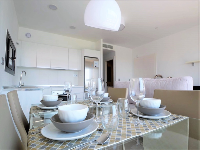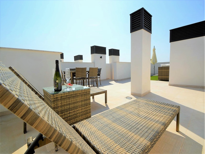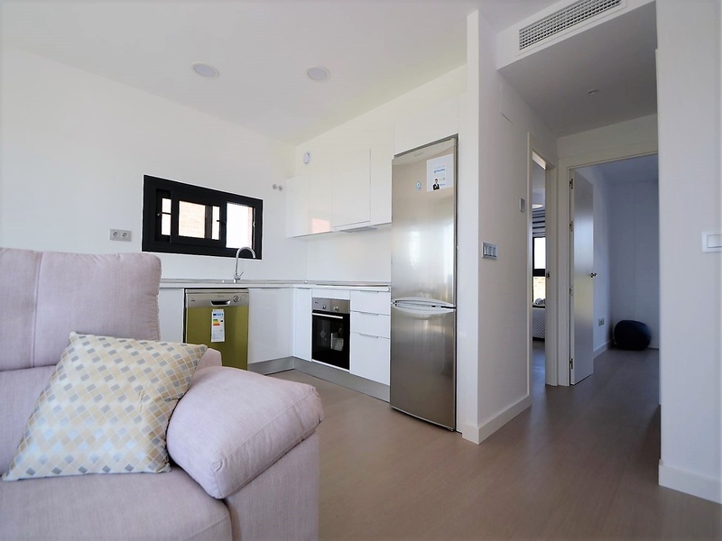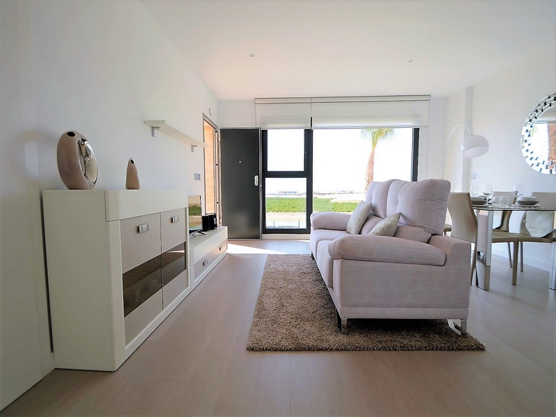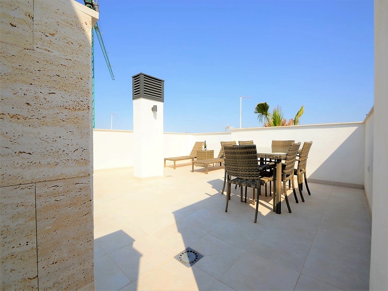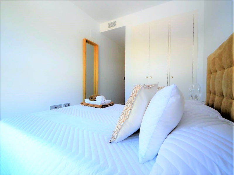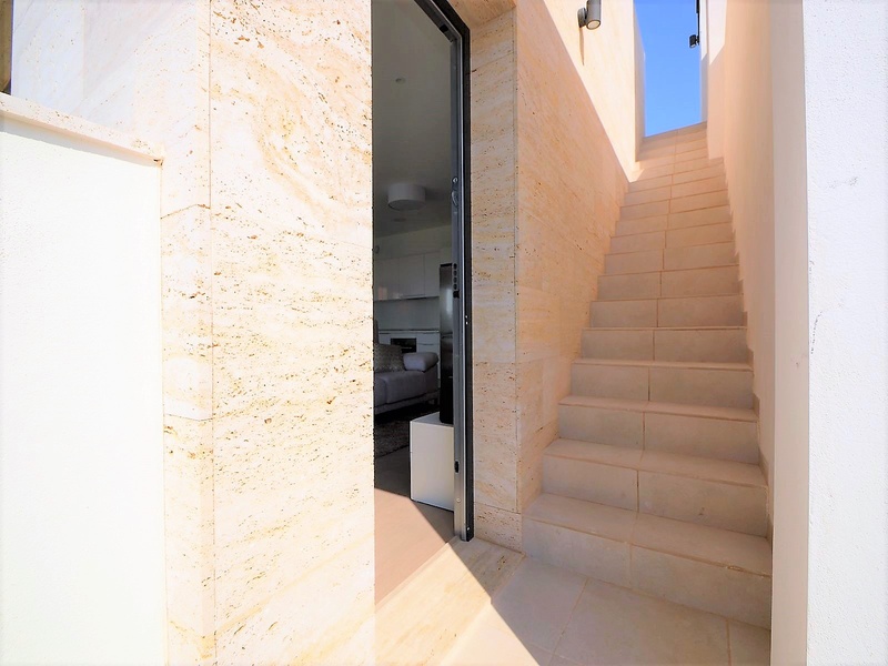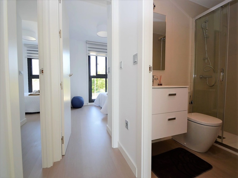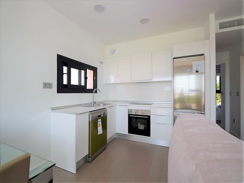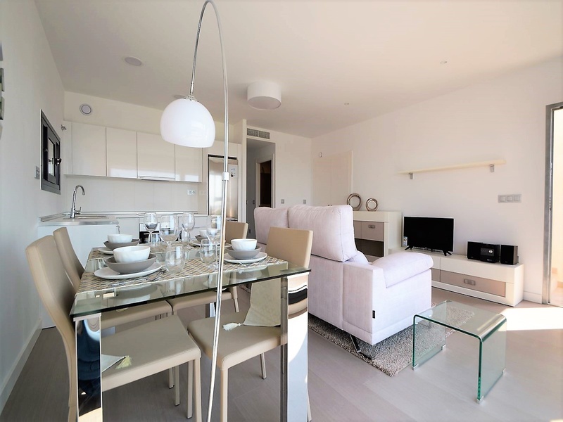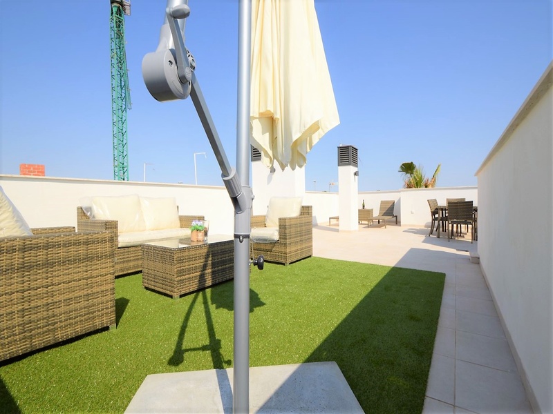 New build key ready 3 bedrooms apartment for sale. It is placed on the high floor of a two-levels building. A built surface area consist of 66,98 distributed between 2 bedrooms, 2 bathrooms, a living-dining room, an open kitchen and a storeroom. It also disposes of a wide solarium with sea views and a parking space at the common parking. Fully furnished and equipped with appliances kitchen, furnished and equipped bathrooms, pre-installation of air conditioning by ducts, armored entrance door, PVC windows, built-in wardrobes in both bedrooms. Dual orientation guarantees excellent lighting. The apartment is located on the high floor of a two-floors residential block, forming part of a closed complex with large green areas and communal swimming pools. The complex is located in between the golf courses Lo Romero, at 9 kilometers from the sea. The price of the described above object is 149.000 €. The second housing block of the same complex is under construction and will be finished in 2018.