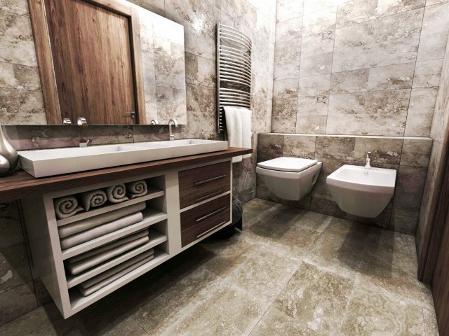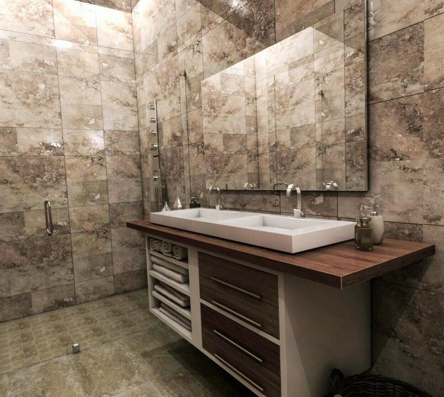 • in bathrooms — high-class ceramic/marble, Grohe plumbing products